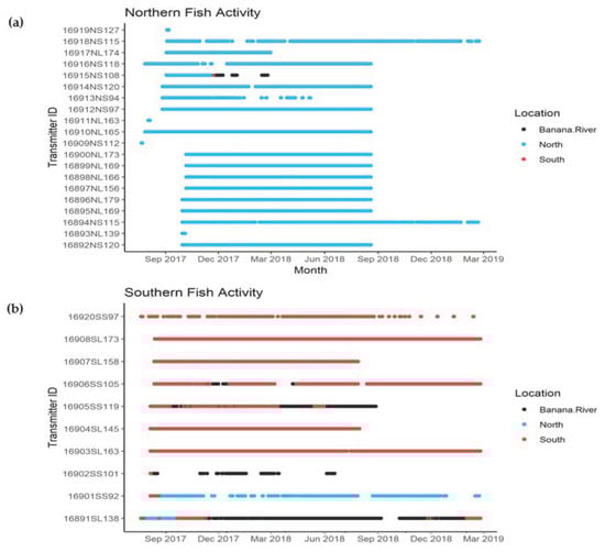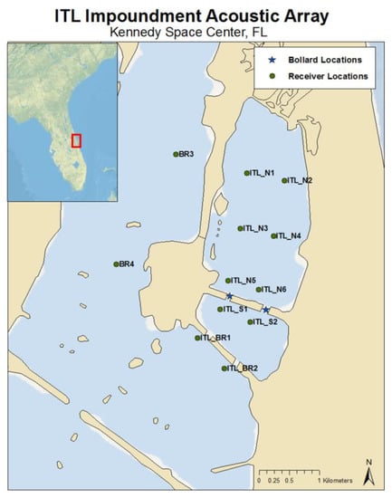 - Reyier, E.A.; Scheidt, D.M.; Stolen, E.D.; Lowers, R.H.; Holloway-adkins, K.G.; Ahr, B.J. Residency and Dispersal of Three Sport Fish Species From a Coastal Marine Reserve: Insights From a Regional-Scale Acoustic Telemetry Network. In Global Ecology and Conservation; Elsevier Ltd.: Amsterdam, The Netherlands, 2020. [Google Scholar]