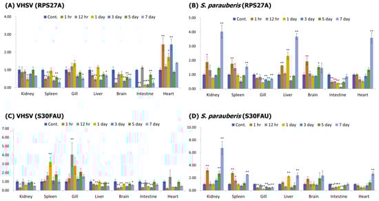 3.2.2. Analysis of Expression by Time after Artificial Infection with Pathogens