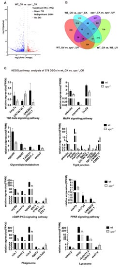 3.5. A Total of 379 Differentially Expressed Genes in xpc−/− Mutant were Identified Not to Respond to UV Irradiation
