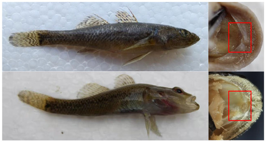 - Wu, H. Fauna Sinica Ostichthyes Perciformes (V) Gobioidei; Science Press: Beijing, China, 2008. [Google Scholar]