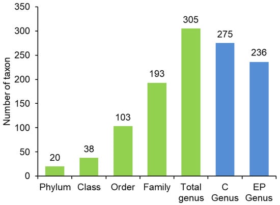 | Treatments | Genus | Margalef’s Species Richness (d) | Pielou’s Evenness (J’) | Shannon Index | Simpson Index |