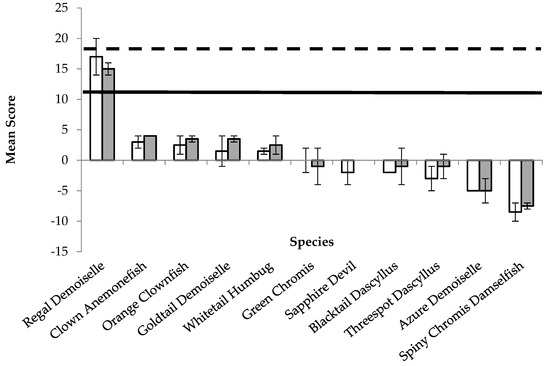 | Spiny Chromis Damselfish | −8.5 | 3 | 0.68 | Low | −7.5 | 1 | 0.44 | 0.65 | Low |