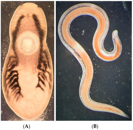- Cribb, T.H.; Chisholm, L.A.; Bray, R.A. Diversity in the Monogenea and Digenea: Does lifestyle matter? Int. J. Parasitol. 2002, 32, 321–328.93. [Google Scholar] [CrossRef]