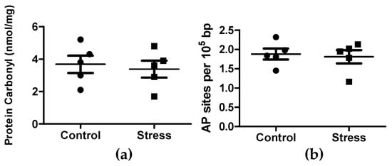 DNA oxidative damage and protein carbonylation were determined using the commercially available kits OxiSelect Oxidative DNA Damage Quantification (catalog number STA-320) and OxiSelect Protein Carbonyl Spectrophotometric Assay (catalog number STA-310) (Cell Biolabs, San Diego, CA, USA), respectively, following the manufacturer’s instructions. For further details, see Rivas-Aravena et al. [18].