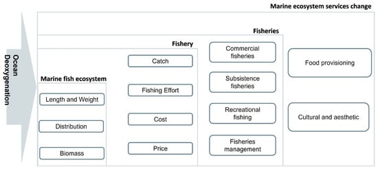 Commercial fishers typically exploit fish resources in more distant areas, while subsistence fishers tend to fish closer to home. This suggests that commercial fishery has a greater flexibility to adapt to changes in environmental conditions, such as those caused by climate change, which could have a more devastating impact on subsistence and artisanal fishers, with potentially catastrophic consequences for fishing communities worldwide []. Overall, ocean deoxygenation can have significant adverse effects on the economic structure of the fishing industry, which, in turn, has broader implications for the economy as a whole (Figure 3) [].