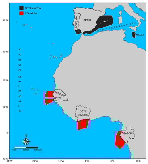 Muñoz-Lechuga, R.; Sow, F.N.; Constance, D.N.; Angueko, D.; Macías, D.; Massa-Gallucci, A.; da Silva, G.B.; Gonçalves, J.M.S.; Lino, P.G. Differentiation of Spatial Units of Genus Euthynnus from the Eastern Atlantic and the Mediterranean Using Otolith Shape Analysis. Fishes 2023, 8, 317. https://doi.org/10.3390/fishes8060317