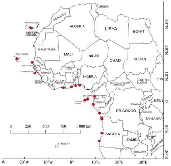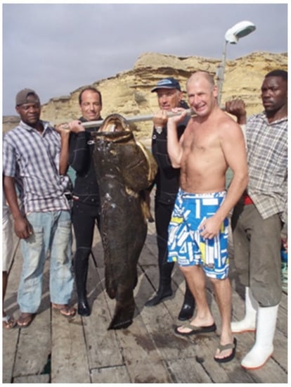 Barreiros, J.P.; Coleman, F.C. West African Goliath Grouper: Where Are They between Senegal and Angola? Fishes 2023, 8, 318. https://doi.org/10.3390/fishes8060318