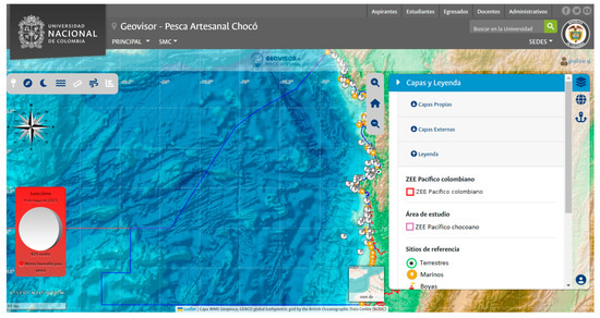 - Training and social appropriation of the system: A participation strategy was created through training sessions to improve fishing operation efficiency and, consequently, fishers’ quality of life. During these sessions, the target community was provided with a didactic primer, short videos, and a detailed user manual that compiled the functionalities of all available tools for interaction and appropriation by the fishers.