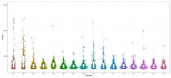 Our team scientifically monitored ship sturgeons caught in the Chinese section of the river system of Ili River–Balkhash Lake (the green area in Figure S1; all distribution areas in Figure S1 came from the IUCN). The wild fish in this study were caught with permission provided by a scientific fishing license issued by the Agriculture and Rural Affairs Department of Xinjiang Uygur Autonomous Region. Fishing permits must be renewed and reapproved annually. In this study, there were 16 individuals—5 adults, 7 subadults, and 4 juveniles—and their genders were not identified. The compound 2-phenoxyethanol (C8H10O2) was used as an anesthetic to prevent injury to the fish during handling and cutting of some of their caudal fins. Then, the fin samples were stored in absolute ethanol in a refrigerator at −20 °C until the extraction of genomic DNA. The genomic DNA was extracted by using the standard phenol–chloroform protocol, and the DNA samples were sequenced on a DNBseq platform (PE150 model) from the BGI company (Shenzhen, China), according to the manufacturer’s protocols. The raw sequence data were submitted to the Genome Sequence Archive [] of the National Genomics Data Center [] (Beijing Institute of Genomics (BIG), Chinese Academy of Sciences).