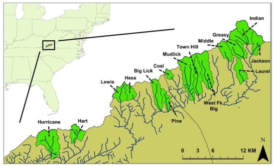 Surveys conducted since 1999 [3,4] have found that Clinch Dace occupy 16 streams in eight drainages of the upper Clinch River in Russell and Tazewell counties in southwestern Virginia, USA. Clinch Dace populations are isolated and have low densities [5]. White and Orth [3] showed negative correlations between Clinch Dace presence and substrate particle size, stream width, and conductivity. Clinch Dace occupancy was positively correlated with the proportion of forested land in the respective watersheds [5]. Clinch Dace occupies restricted habitats in isolated patches, especially in areas affected by coal mining and logging; hence, it is vulnerable to local extirpation. Virginia’s Wildlife Action Plan [6] classifies Clinch Dace as Tier II—Very High Conservation Need. Clinch Dace is under review for potential listing under the U.S. Endangered Species Act [7].
