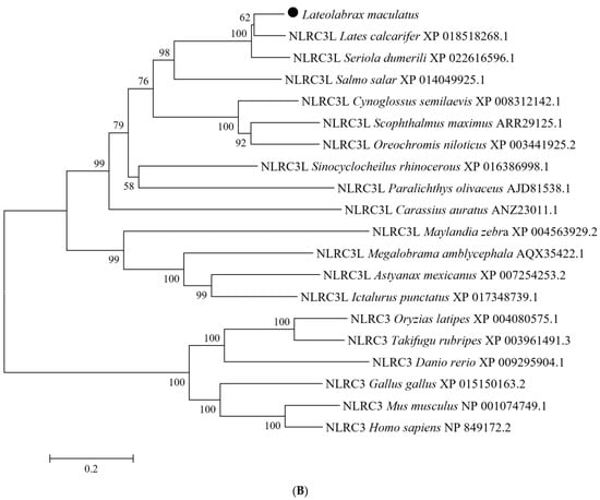 - Chang, M.X.; Xiong, F.; Wu, X.M.; Hu, Y.W. The expanding and function of NLRC3 or NLRC3-like in teleost fish: Recent advances and novel insights. Dev. Comp. Immunol. 2021, 114, 103859. [Google Scholar] [CrossRef] [PubMed]