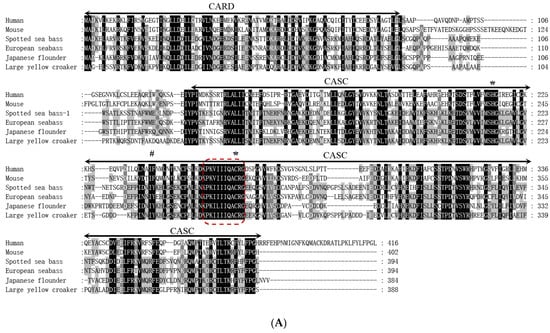 APA StyleYuan, S., Sun, Z., Gao, Q., Li, Z., Qi, Z., Zheng, S., & Liu, D. (2023). Molecular Characterization and Expression Analysis of NLRC3-like, ASC, and Caspase1 in Spotted Sea Bass (Lateolabrax maculatus). Fishes, 8(7), 378. https://doi.org/10.3390/fishes8070378