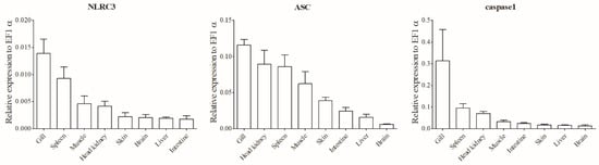 3.2. Tissue Distributions of NLRC3L, ASC, and Caspase1 of Spotted Sea Bass
