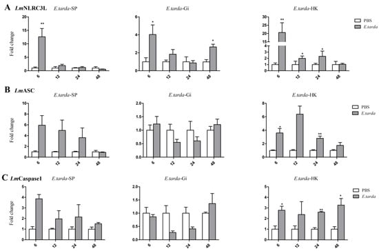 3.5. Expressions of NLRC3L, ASC, and Caspase1 of Spotted Sea Bass Following E. tarda Infection