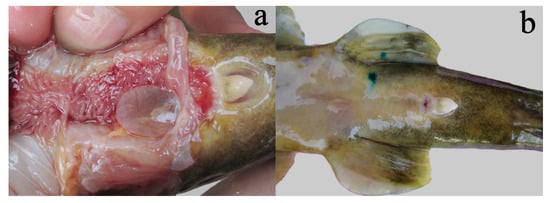 - Esmaeili, H.R.; Sayyadzadeh, G.; Chermahini, M.A. Sexual dimorphism in two catfish species, Mystus pelusius (Solander, 1794) and Glyptothorax silviae Coad, 1981 (Teleostei: Siluriformes). Turk. J. Zool. 2017, 41, 144–149. [Google Scholar] [CrossRef]