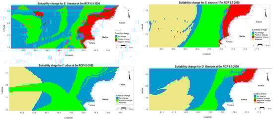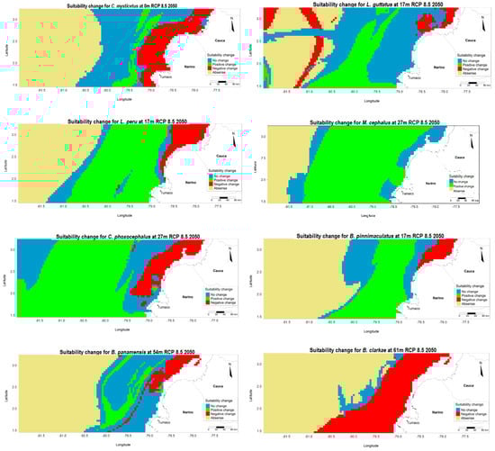 - Selvaraj, J.J.; Rosero-Henao, L.V.; Cifuentes-Ossa, M.A. Projecting future changes in distributions of small-scale pelagic fisheries of the southern Colombian Pacific Ocean. Heliyon 2022, 8, e08975. [Google Scholar] [CrossRef]