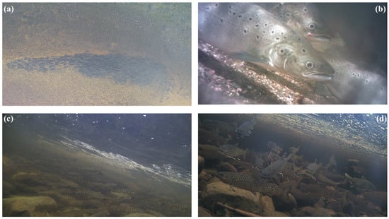 - Morgan, A.M.; O’Sullivan, A.M. Cooler, Bigger; Warmer, Smaller: Fine-Scale Thermal Heterogeneity Maps Age Class and Species Distribution in Behaviourally Thermoregulating Salmonids. River Res. Appl. 2023, 39, 163–176. [Google Scholar] [CrossRef]
