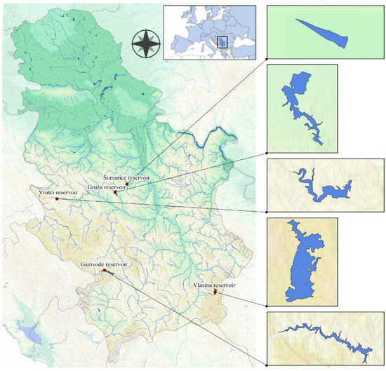 The study included five multipurpose reservoirs in Serbia which are used for water supply, hydropower generation, irrigation, recreation and tourism: the Vlasina, Gruža, Gazivode, Šumarice and Vrutci reservoirs (Figure 1).