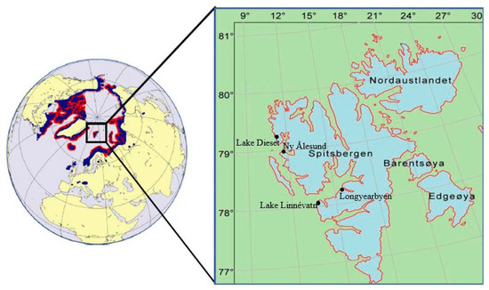 - Svenning, M.-A.; Klemetsen, A.; Olsen, T. Habitat and Food Choice of Arctic Charr in Linnévatn on Spitsbergen, Svalbard: The First Year-Round Investigation in a High Arctic Lake. Ecol. Freshw. Fish 2007, 16, 70–77. [Google Scholar] [CrossRef]