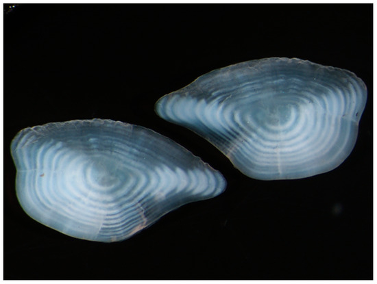 - Reay, P.J. The Seasonal Pattern of otolith Growth and Its Application to Back-Calculation Studies in Ammodytes Tobianus L. J. Cons. Int. Explor. Mer. 1972, 34, 485–504. [Google Scholar] [CrossRef]