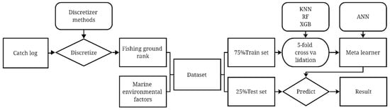 - Hou, J.; Zhou, W.; Fan, W.; Zhang, H. Research on fishing grounds forecasting models of albacore tuna based on ensemble learning in South Pacific. South China Fish. Sci. 2020, 5, 42–50, (In Chinese with English abstract). [Google Scholar]