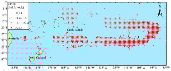 - Xu, H.; Song, L.; Shen, J.; Li, Y.; Zhang, M. The relationship between the spatial-temporal distribution of albacore tuna CPUE and the marine environment variables in waters near the Cook Islands based on GAM. Mar. Sci. Bull. 2023, 4, 444–455, (In Chinese with English abstract). [Google Scholar]