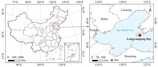 M. yessoensis were captured from Longwangtang Bay (Figure 1) (38°48′ N 121°23′ E, Lvshunkou District, Dalian, China) in November 2022, placed in a holding tank under humid conditions, and returned to the Key Laboratory of Mariculture & Stock Enhancement in North China’s Sea (Ministry of Agriculture, Dalian Ocean University, Dalian, China). After being thoroughly rinsed, the scallops were temporarily raised in tanks. During the culture period, spirulina powder was fed regularly twice a day at a rate of 3–5 mg/L per feeding. The water temperature was maintained at 15 ± 0.5 °C, with a salinity of 30. Continuous aeration was provided, and filtered seawater was replaced daily with a water exchange volume of 50%. Following a 7-day culture period, scallops that were able to close naturally and in a healthy state without damage were selected for subsequent experiments.