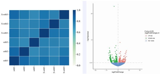 The correlation coefficients within and between groups were calculated and plotted as a heatmap according to the FPKM values of all genes in each sample. As shown in the left part of Figure 10, the mBJ group was different from the X-mBJ group in the sample correlations.