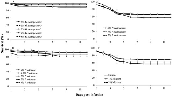 | 1% G. senegalensis | 88.7 | 10.0 | 30.7 | 8.8 | 4.8 | |