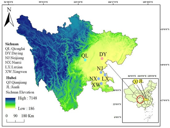Based on the concordant outcomes of the NJ tree and STRUCTURE analyses, the two populations from Hubei Province, QJ and JL, were segregated into separate clusters. Conversely, the five Sichuan populations, DY from the northeastern basin, alongside NX, XW, NJ, and LX from the southern basin, were grouped together with the QJ population. The QL population, from the center urban agglomeration, was clustered with Hubei population JL. These findings suggest a close ancestral relationship between the DY, NX, XW, NJ and LX populations, and the Hubei population QJ. Additionally, the QL population might be traced back to the Hubei population JL. Despite being cultivated in varied environmental conditions across different sites in Sichuan, these populations genetically interacted and may have adapted to their respective locales, ultimately contributing to the formation of distinct populations entities.