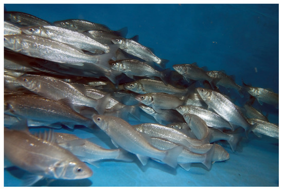 - Ruyet, J.P.; Mahé, K.; Bayon, N.L.; Delliou, H.L. Effects of temperature on growth and metabolism in a Mediterranean population of European seabass, Dicentrarchus labrax. Aquaculture 2004, 237, 269–280. [Google Scholar] [CrossRef]