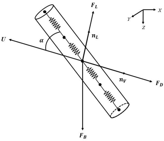 The external forces consisted of the drag force (), lift force (), and buoyancy or sinking force (), with these external forces acting on the fishing gear system only through the mass point (Figure 3).