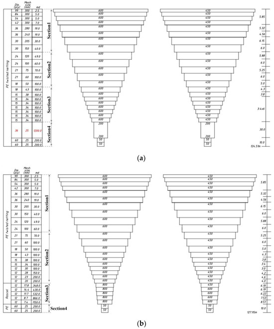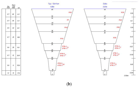 Section arrangements of the (a) Type A and (b) Type B coastal stow nets used to analyze the resistance force.