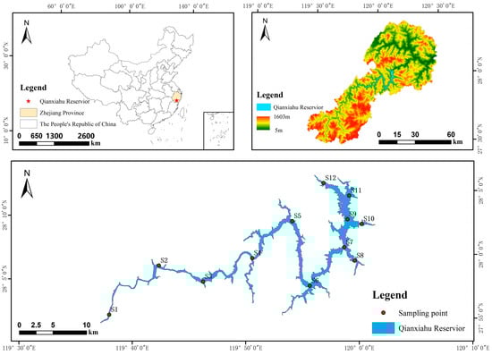 Geographical location and sample sites of the Qianxiahu Reservoir.