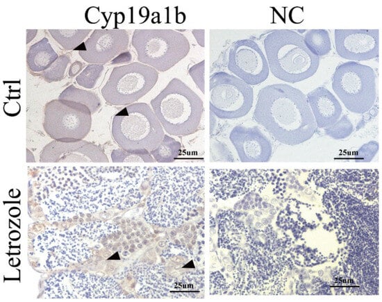 3.6. Expression of Cyp19a1b with Letrozole Treatment