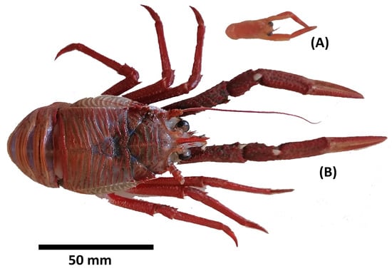 Chicago/Turabian StyleQuispe-Machaca, Marco, Maximiliano Zilleruelo, Pepe Espinoza, Gabriela Torres, and Ángel Urzúa. 2024. "Living Along Distribution Margins: Differences in the Body and Biochemistry of Red Squat Lobster Morphotypes (Grimothea monodon) from the Humboldt Current System" Fishes 9, no. 11: 445. https://doi.org/10.3390/fishes9110445