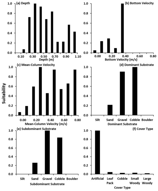 - Bovee, K.D. Development and Evaluation of Habitat Suitability Criteria for Use in the Instream Flow Incremental Methodology; U.S. Fish and Wildlife Service: Atlanta, GA, USA, 1986; Biological Report 86(7). [Google Scholar]