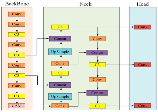 The overall network structure of the improved YOLOv5s algorithm is shown in Figure 5.