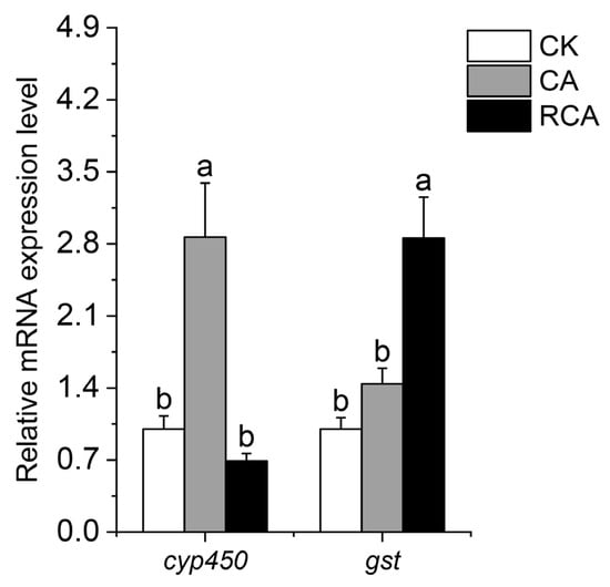3.6. Changes in the Expression Levels of Detoxification-Metabolism-Related Genes in the Gills