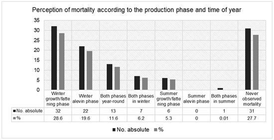 Figure 2. Perception of mortality of the tilapia farmers participating in the study presented by absolute number and percentage.