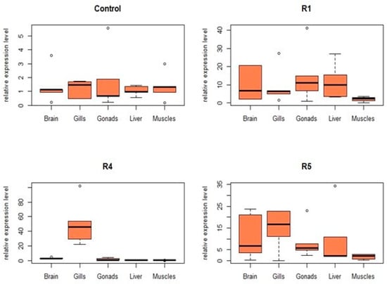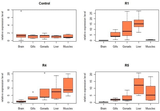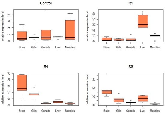 | Brain | Gills | Gonads | Liver | Muscle | |||||
