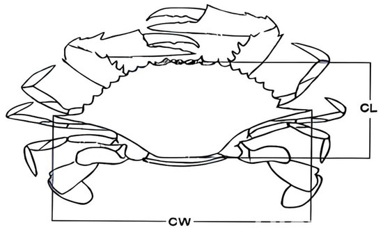 - Ben Abdallah-Ben Hadj Hamida, O.; Ben Hadj Hamida, N.; Chaouch, H.; Missaoui, H. Allometry, condition factor, and growth of the swimming blue crab Portunus segnis in the Gulf of Gabès, Southeastern Tunisia (Central Mediterranean). Mediterr. Mar. Sci. 2019, 20, 566–576. [Google Scholar] [CrossRef]