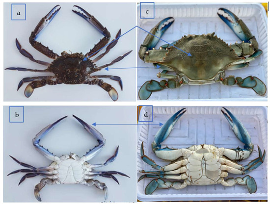 - Nehring, S. Invasion history and success of the American blue crab Callinectes sapidus Rathbun, 1896 in European and adjacent waters. In In the Wrong Place—Alien Marine Crustaceans: Distribution, Biology and Impacts; Springer: Berlin/Heidelberg, Germany, 2011; pp. 607–624. [Google Scholar]