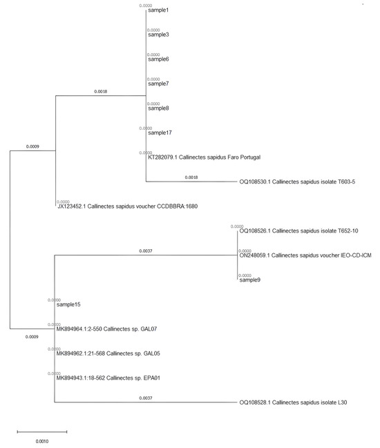| Sample 15 | Zarzis | Callinectes sapidus | 99% (JX123452) |