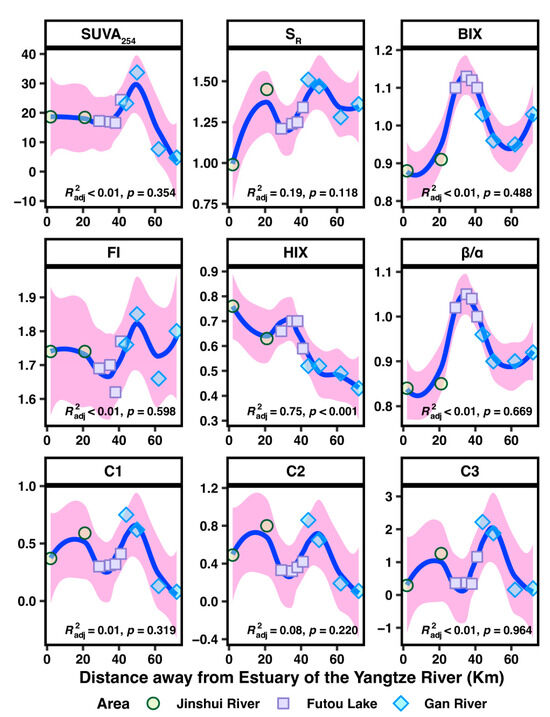 - Liu, Q.; Jiang, Y.; Tian, Y.; Hou, Z.; He, K.; Fu, L.; Xu, H. Impact of Land Use on the DOM Composition in Different Seasons in a Subtropical River Flowing through a Region Undergoing Rapid Urbanization. J. Clean. Prod. 2019, 212, 1224–1231. [Google Scholar] [CrossRef]