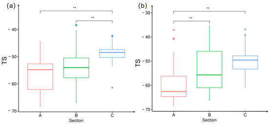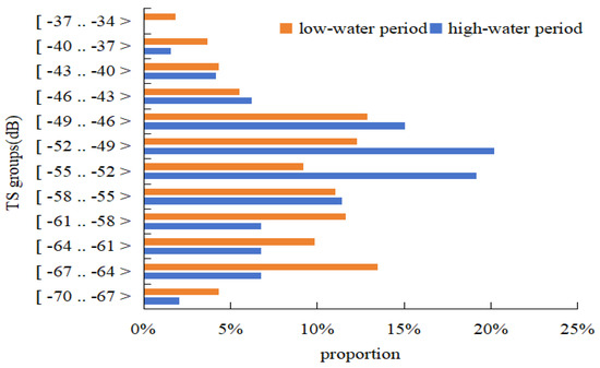 3.1. Fish Target Strength and Spatial Distribution Characteristics