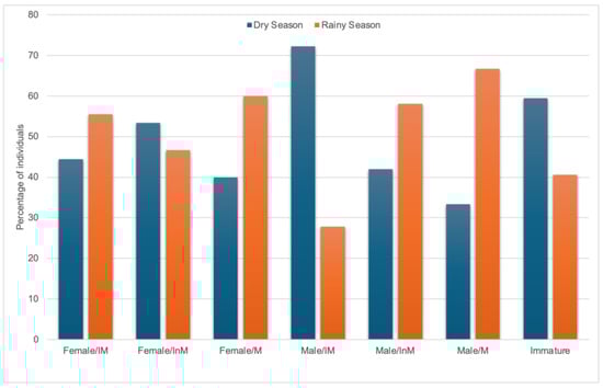 Gonadal Stage (N) | NS (%) | Gonadal Stage (N) | NS (%) | ||