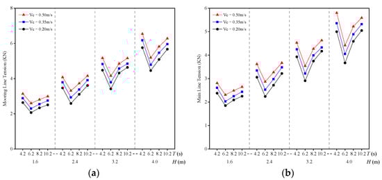 3.1. Maximum Tension in Mooring Lines and Main Lines Under Environmental Loads