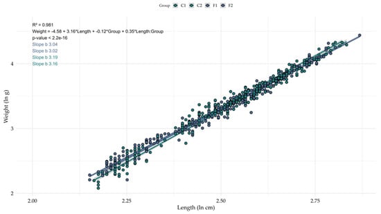 - Korkut, A.K.A.Y.; Gurkan, S. Length-Weight Relationship and Condition Factor as an Indicator of Growth and Feeding Intensity of Sea Bream (Sparus aurata L., 1758) given Feed with Different Protein Contents. Indian J. Anim. Res. 2018, 53, 510–514. [Google Scholar]