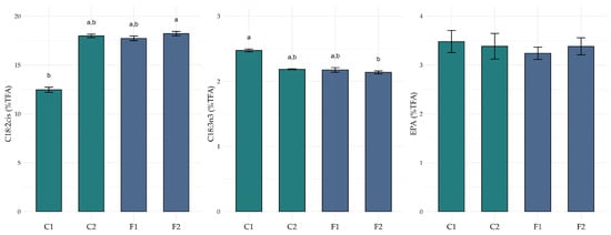 3.3. Fatty Acid Profile and Fatty Acids Indices
